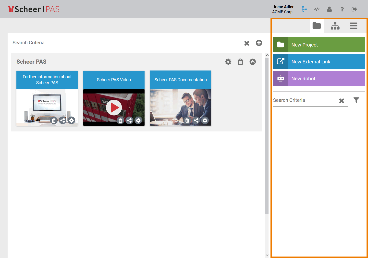 For later use, this means: After logging in, you either want to work in a project or start a Process App. For this reason, you can create tiles in the cockpit for projects and Process Apps, which give you access to the respective content with just one click.