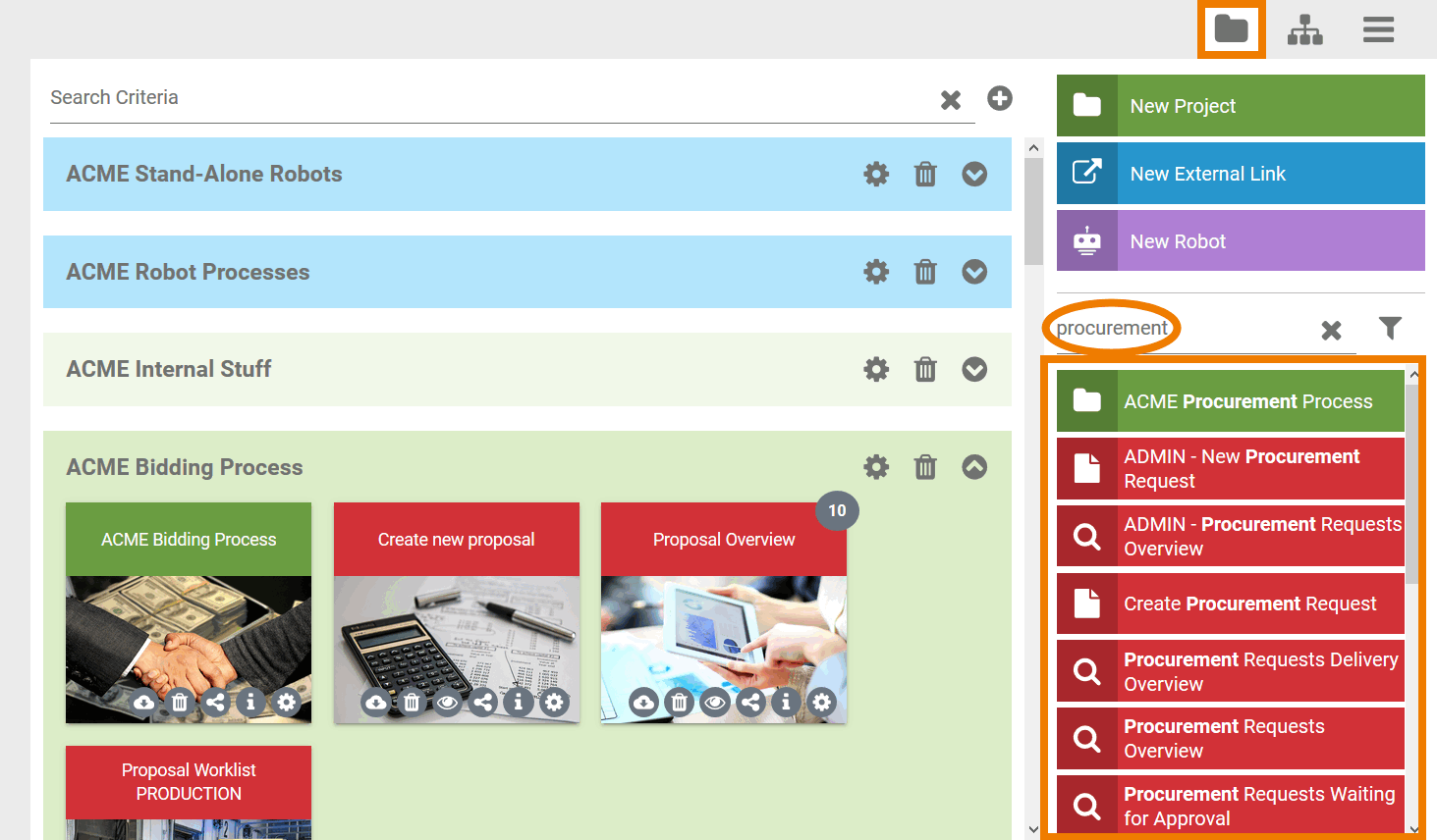Irene also wants to display the imported project in the cockpit. After an import, she first must reload the cockpit (for example by pressing F5) to make the imported content available.
