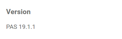The Version section displays the version number of Scheer PAS on which you are currently working: