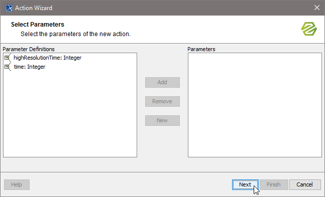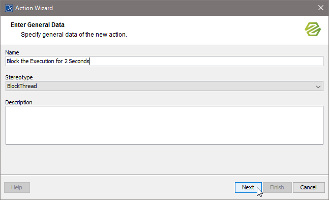 ![]() | Specify the name of the action and select stereotype BlockThread from the list of stereotypes. |