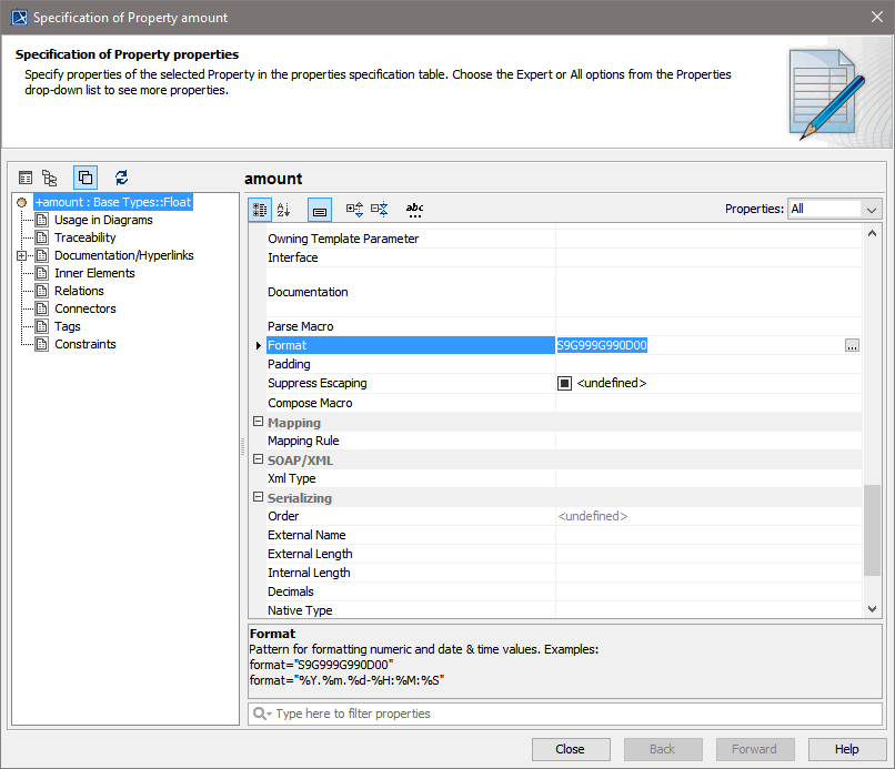 Figure: Specifying a Format Tagged Value on a Class Attribute