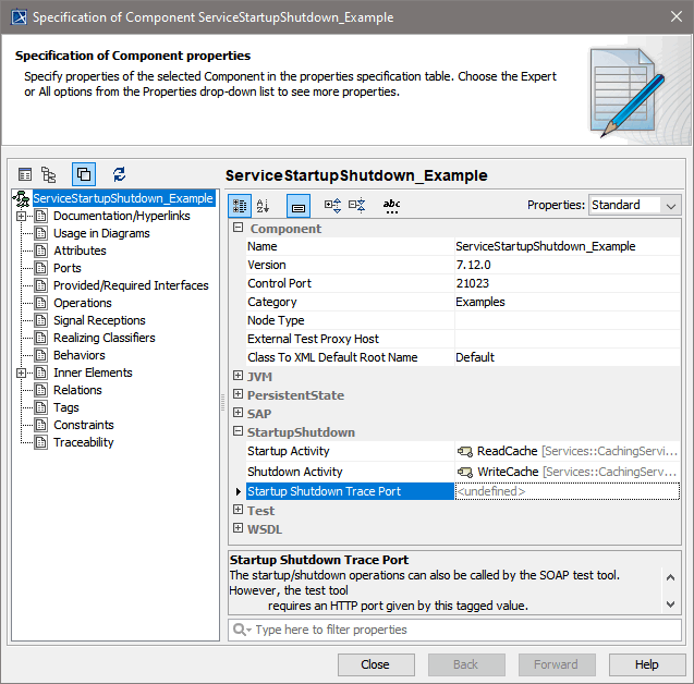 If startup and shutdown activities are present in an xUML service composite, the compiler will automatically generate a shadow port to be able to access them. The generated port number is service port + 40000, but you can configure this on the composite in section StartupShutdown: