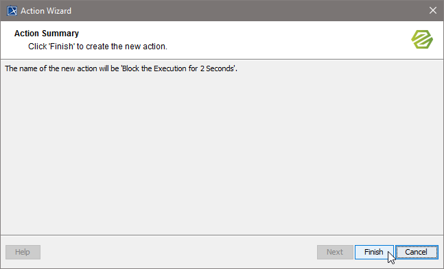 ![]() | Specify the name of the action and select stereotype BlockThread from the list of stereotypes. |