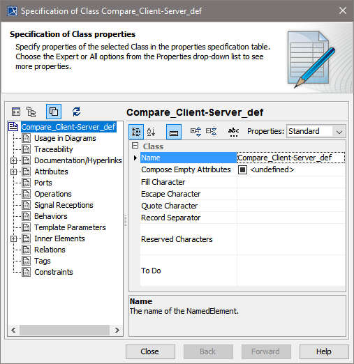 The flat file structure is defined in a class diagram. A root class defines the file and its settings (like e.g. the record separator). This class must have stereotype <<FlatFile>>.