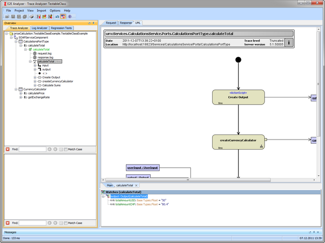 In combination with the E2E Interactive Debugger all activities and action scripts of the service can be stepped through watching the parameters and variables.