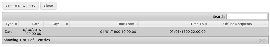 Clicking Create New Entry will open the dialog to create a new downtime entry.