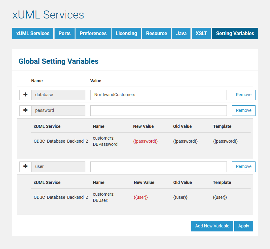 By using the button Add New Variable, you can define one or more new setting variables.
