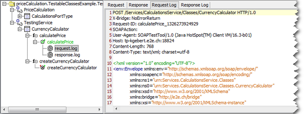The SOAP request in plain HTML can be viewed by selecting request.log from the tree view.