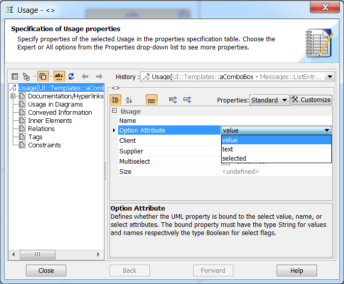 If no stereotype is defined, the attribute value is bound to the text property of the Combo Box.