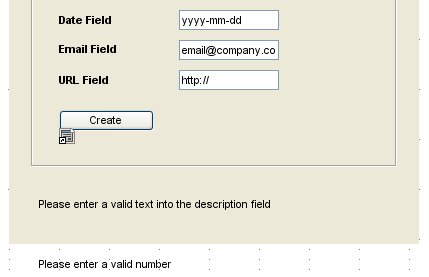 The validation rules are by default derived from the types of the UML attributes bound to the input fields. The following sections describe how the attribute types influence the validation. If the rules become more complex - for example by depending on the values of other fields - it is possible to define them by using JavaScript. How this is done is explained in CustomComplexValidation.