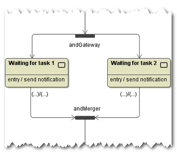 | The parallel gateways are mapped to forks and joins in the state machine. |
