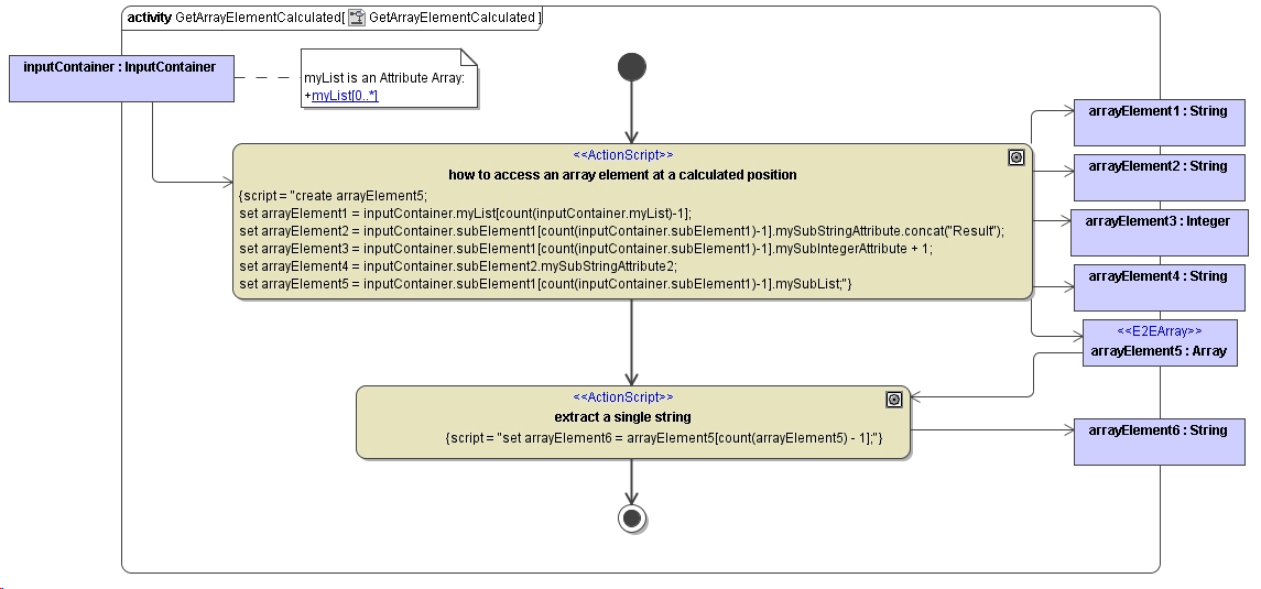 The index number can be a static integer literal, an object of type Integer or an E2E Action Language operation or expression returning an integer. The following activity diagram illustrates some of the more complicated cases: