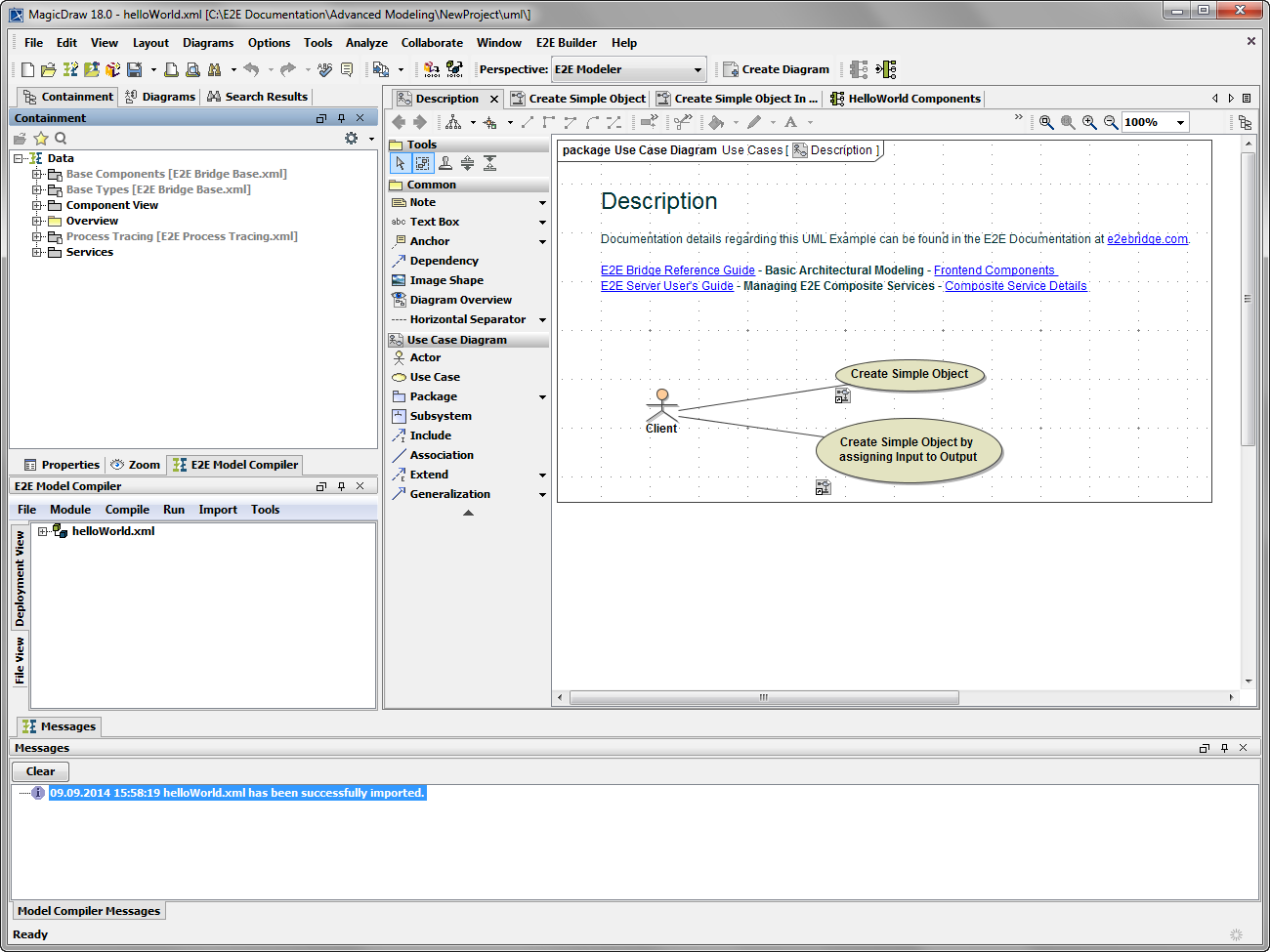 If you have already saved a UML model outside the current Builder project, you import can it by selecting Import > XMI File from the E2E Model Compiler menu.