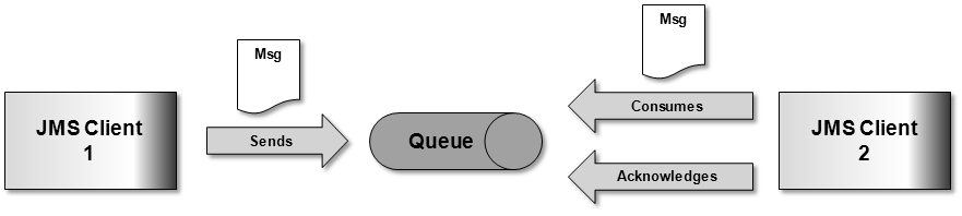 PTP products are built around the concept of message queues. Each message is addressed to a specific queue; clients extract messages from the queue(s). Each message is consumed by one (and only one) consumer, which acknowledges the recipience of the message to the JMS provider. If the client is temporarily not available, the message can be stored and then received at any time later.