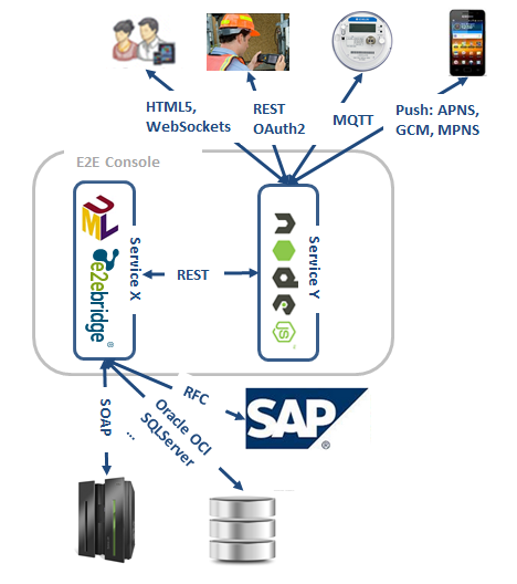 • Integrating mobiles requiring high scalability, support of mobile push protocols for Apple (APNS), Google (GCM), and Microsoft (MPNS), etc.