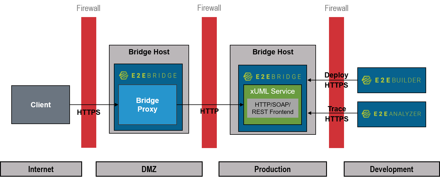 The Bridge supports the use of proxies. The Apache HTTP Server including the appropriate modules has been installed together with the Bridge. The Apache proxy can be used as reverse proxy in front of Bridge SOAP or HTTP frontend services.