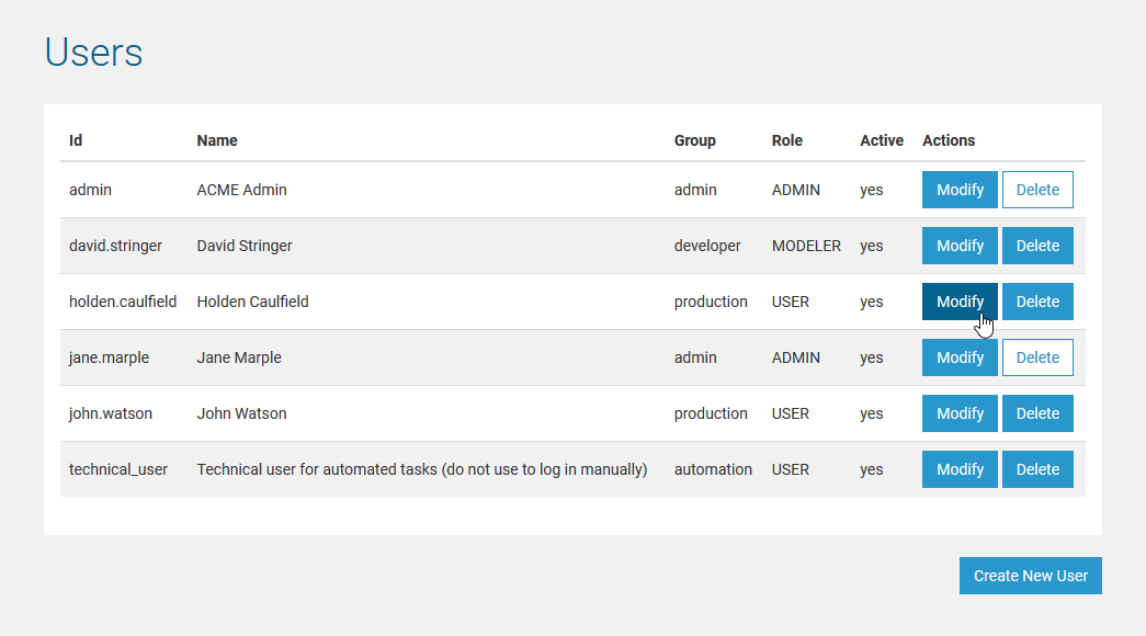 Users who are member of a group, to which the role MODELER or USER has been assigned, may only modify their own user password.