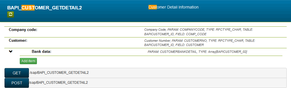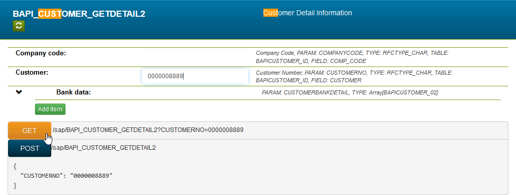 The SAP RESTifier displays the function interface details. By clicking the