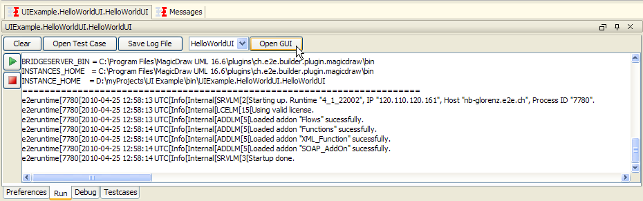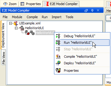 Choose Run "HelloWorldUI" from within the Model Compiler