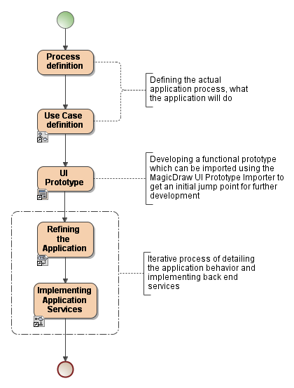 The UI prototype is the base for further development and, prepared properly, the base for transforming it into a running application using the MagicDraw UI prototype Importer. Please refer to the next chapter explaining in detail how to use the importer.