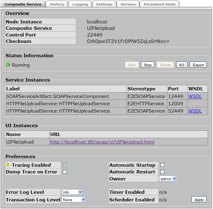 A Bridge UI is integrated within the xUML services administration section. It fully integrates in the Bridge standard UI. In general, the user interface links into the Bridge by applying the appropriate setting when creating the Component Diagram. The Console UI Name parameter represents the name of the xUML service section tab. The check box isConsoleUI, when checked, will show integrate and show the tab and therefore makes the Bridge UI application accessible.