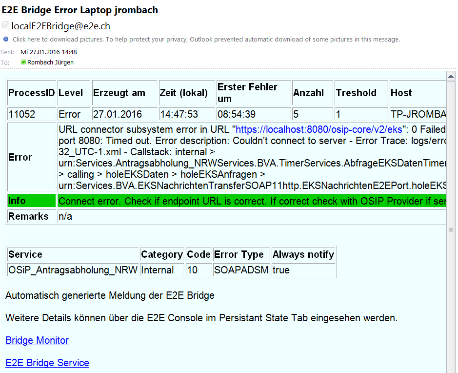 If Info Mail is set to true the Bridge automatically sends a notification email to the configured recipients. It looks like: