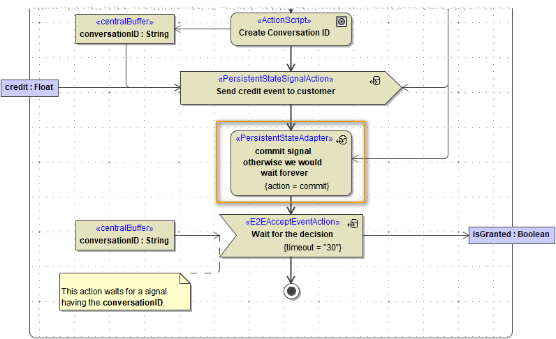 The following chapters describe how to create persistent state objects, retrieve persistent state object handles, and get copies of persistent state objects. For all these operations, actions of stereotype <<PersistentStateAdapter>> are used.