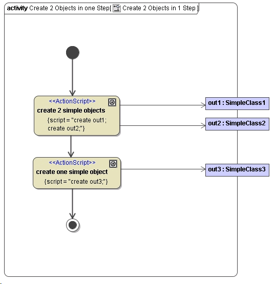 An action can have more than one output object. The figure below shows how to create two objects in one action.