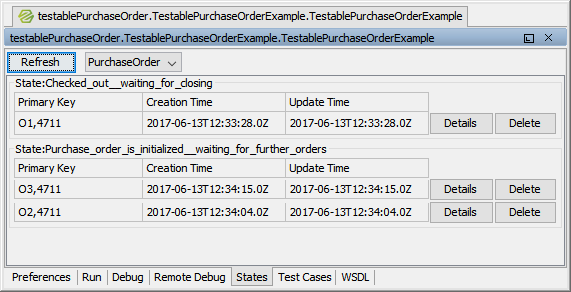 | Delete | Click Delete on a table row to delete this persistent state object. |