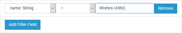Add filters by clicking Add Filter Field and specify a query, e.g.