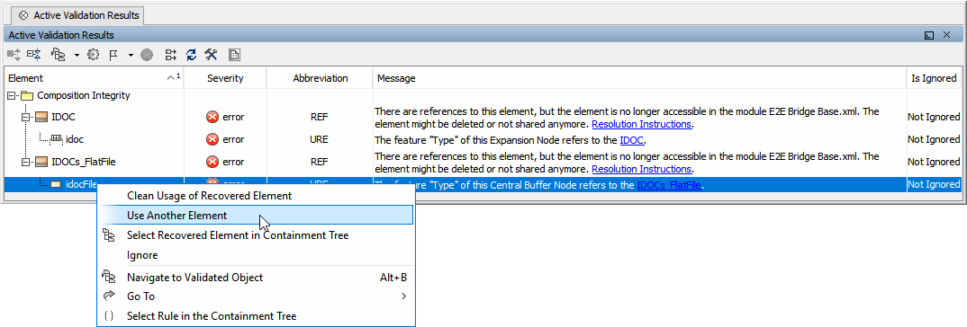Right-click on an erroneous element and select Use Another Element... to replace the recovered element by the correct type.