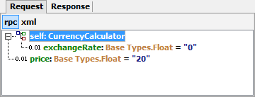 The Request tab of the E2E SOAP Test Tool allows to enter the parameters of the SOAP operation by the use of an intuitive interface. All parameters are listed in a tree-like way. The icon in front of the parameters name indicates the type of the parameter.