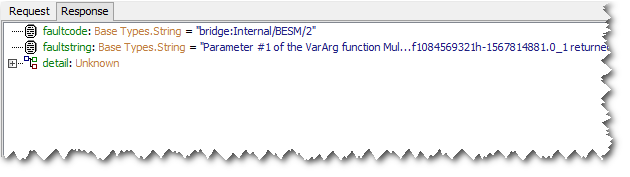 | After running the test case, the Response tab displays the output parameters of the SOAP operation. | ||||||||||