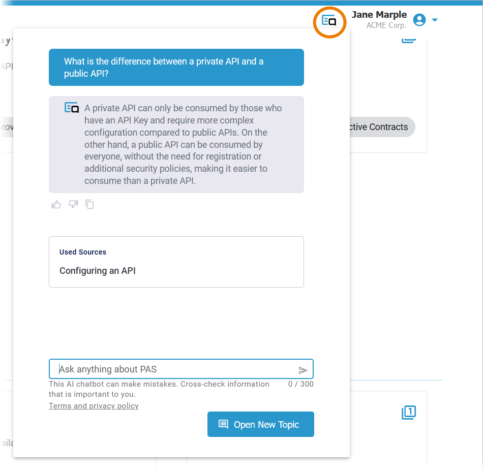 (5) | If you want ask a question within a new context, use Open New Topic to clear the chat. |