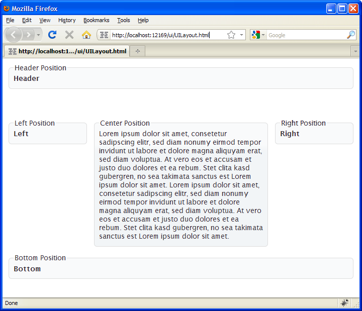In some cases it can be necessary to create a more complex layout consisting of a combination of different user interface areas. This is usually seen on portal sites where there are different areas like a news ticker a navigation and a content part.