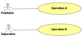 In the first example, operation A can be accessed by both, Supervisor and Employee, whereas operation B is only accessible by users with the role Supervisor.