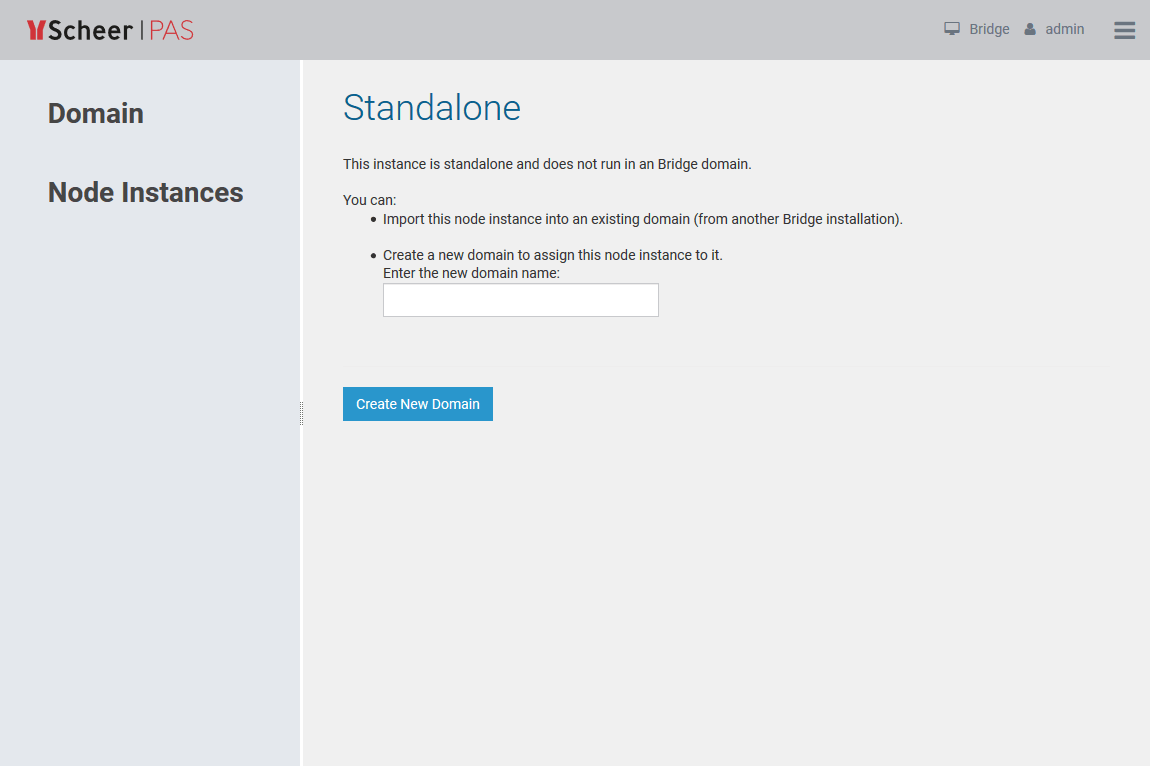 You may now create a new domain or import this node instance into an existing domain from another Bridge installation.