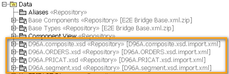 It is also possible to import and use more than one message type within the same model. Therefore, import all necessary message types into your project. For example, after importing the D96 ORDERS and PRICAT (price catalog) messages, you will see the following containment tree: