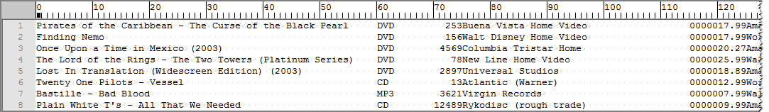 A flat file is a file that contains no information about the structure of the data. The most simple flat file is a position delimited file without header or trailing lines.