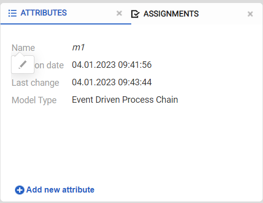 If an occurrence requires its own attribute, you can use Add occurrence-specific attribute (local attribute disconnected from definition) button to overwrite a value in the definition locally. This can be useful, for example, for transaction codes in the context of a process.
