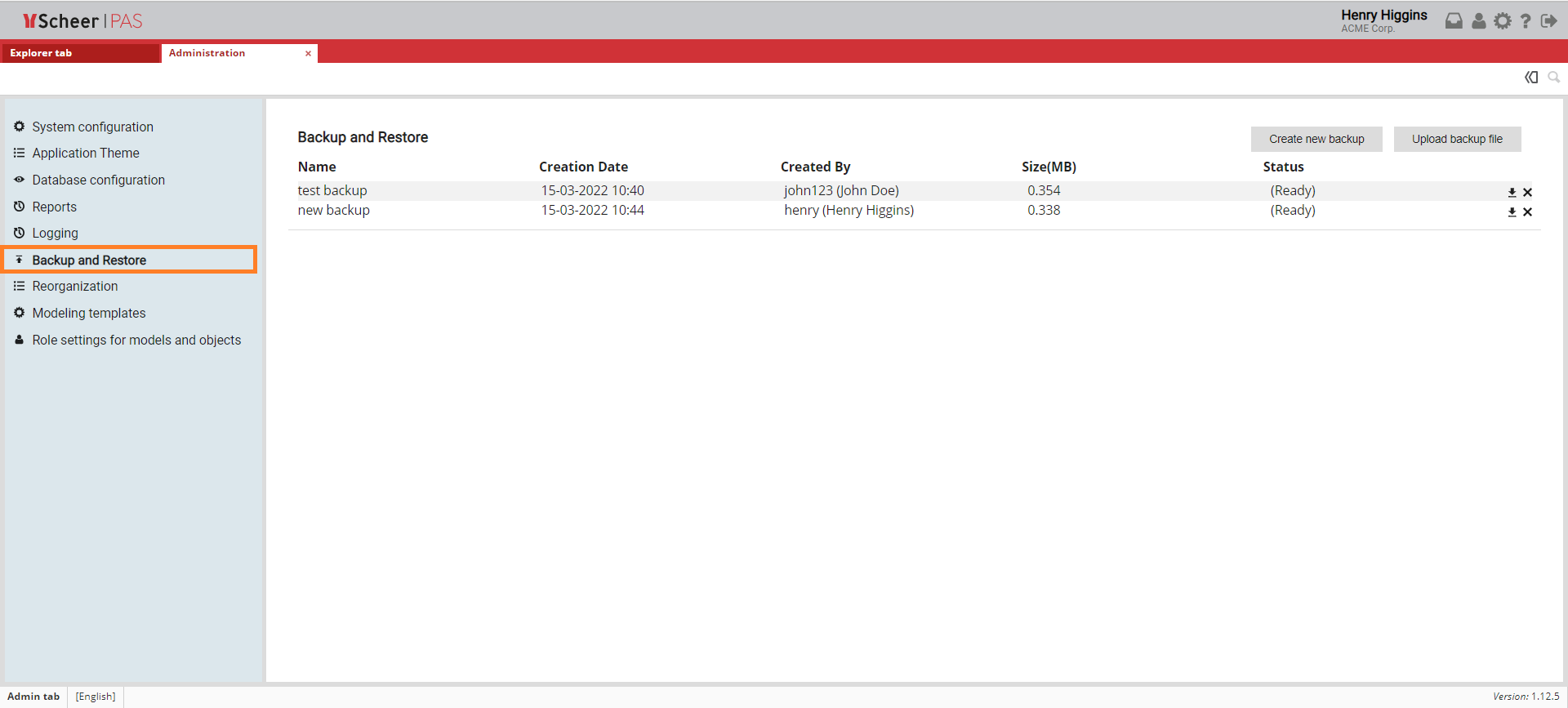Enter a name in the respective field and click Confirm. The backup file is uploaded and can be seen in the list of backups on the server.