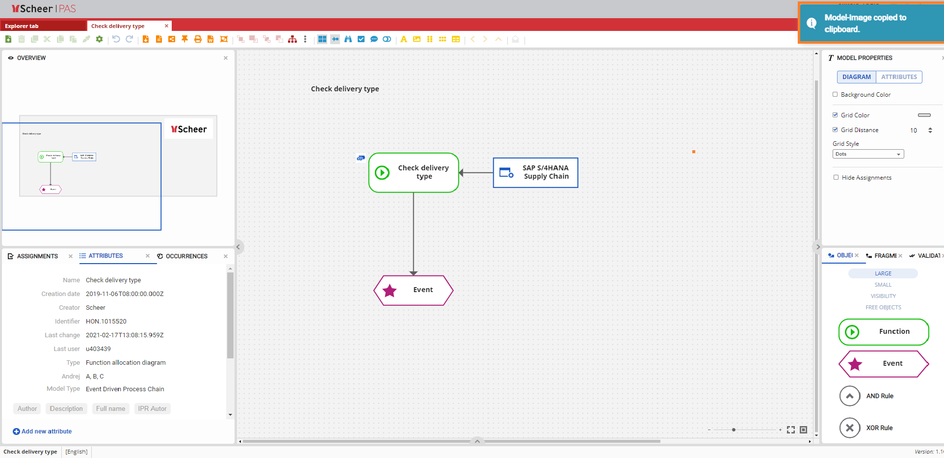 When you click on the Copy Model (as image) to the Clipboard icon in the toolbar, the model shown on the canvas or the selected part of that model will be copied to the clipboard as image.