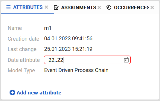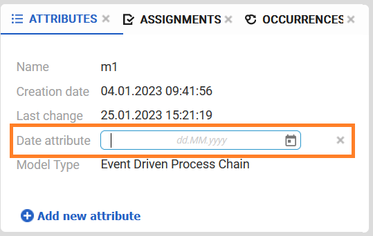 When you add a Date attribute, a new date field appears on the Attributes panel.
