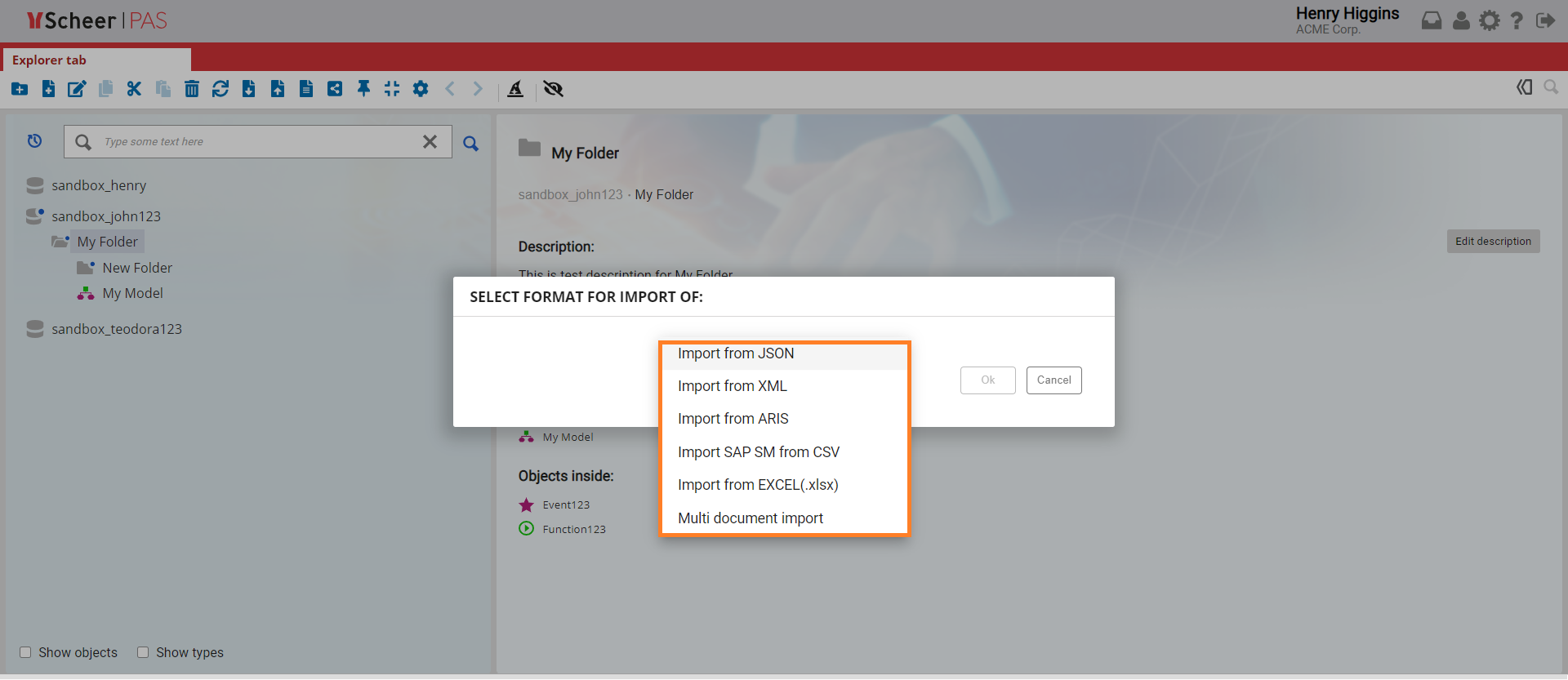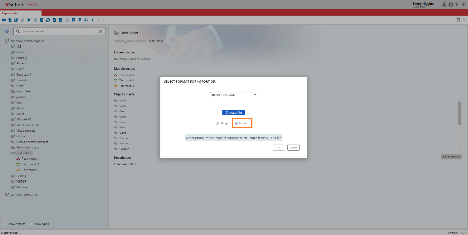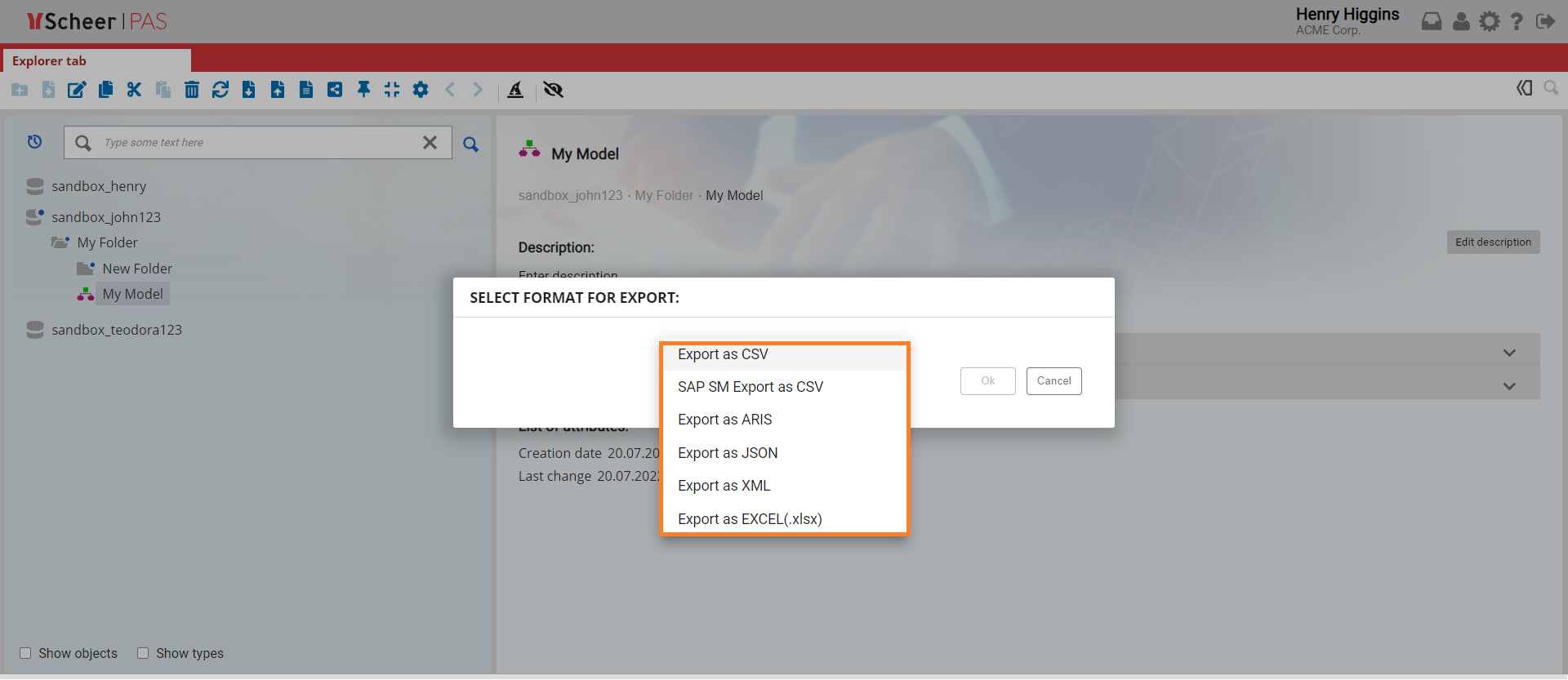When exporting content, you can either select a model or a folder. The data of the selected model or all models contained in the selected folder will be exported.