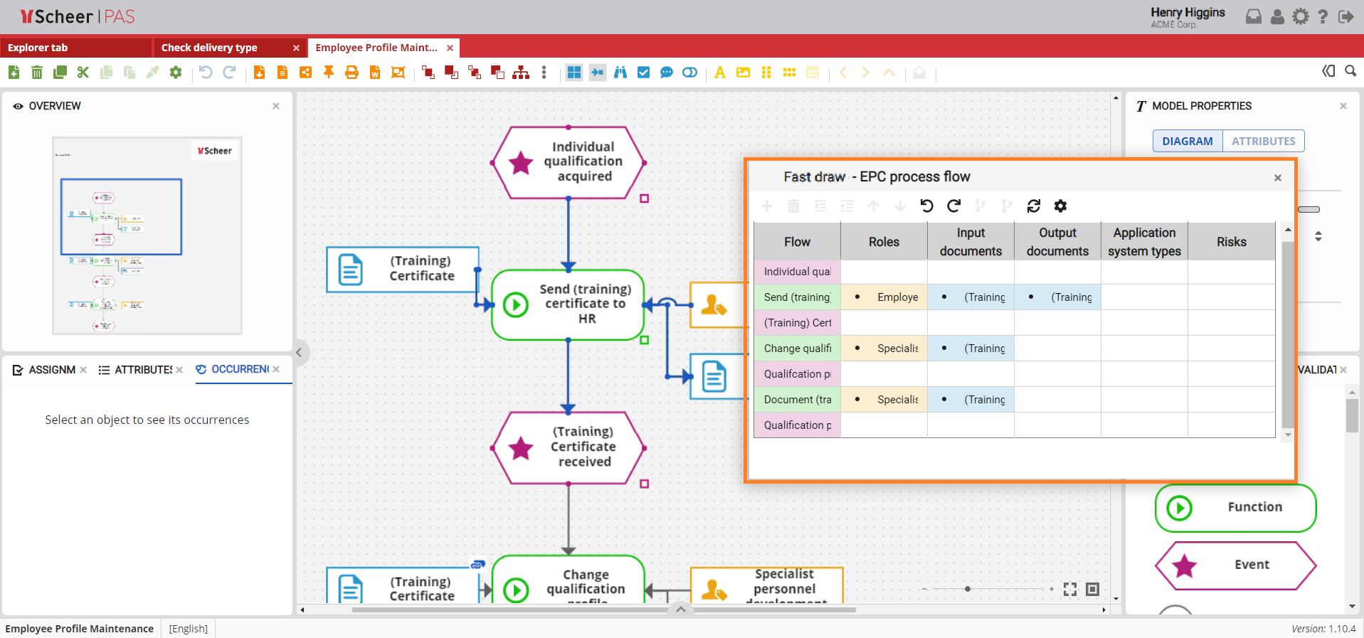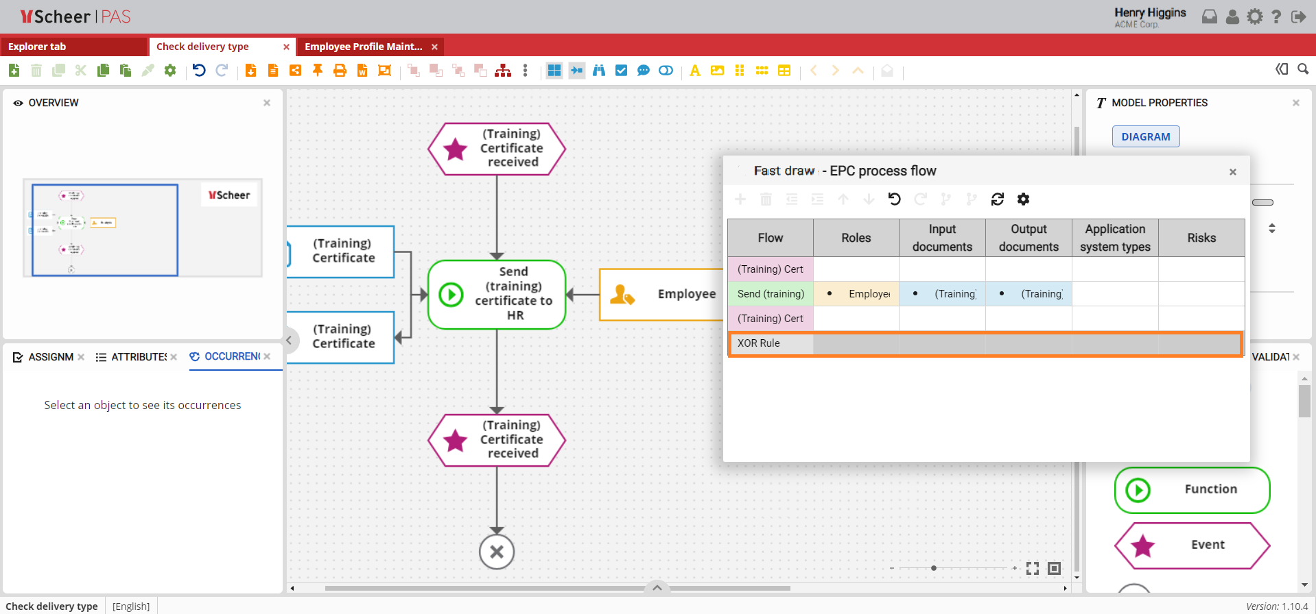 Conditional branches can also be added to the model. They are marked in gray color and it is not possible to add related objects to the cells of the row marked by conditional branching.