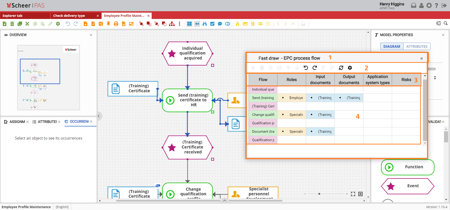 The Fast Draw Table, which opens automatically, is positioned so that the model can be seen, and by adding new rows to the table, the state of the model is automatically updated.