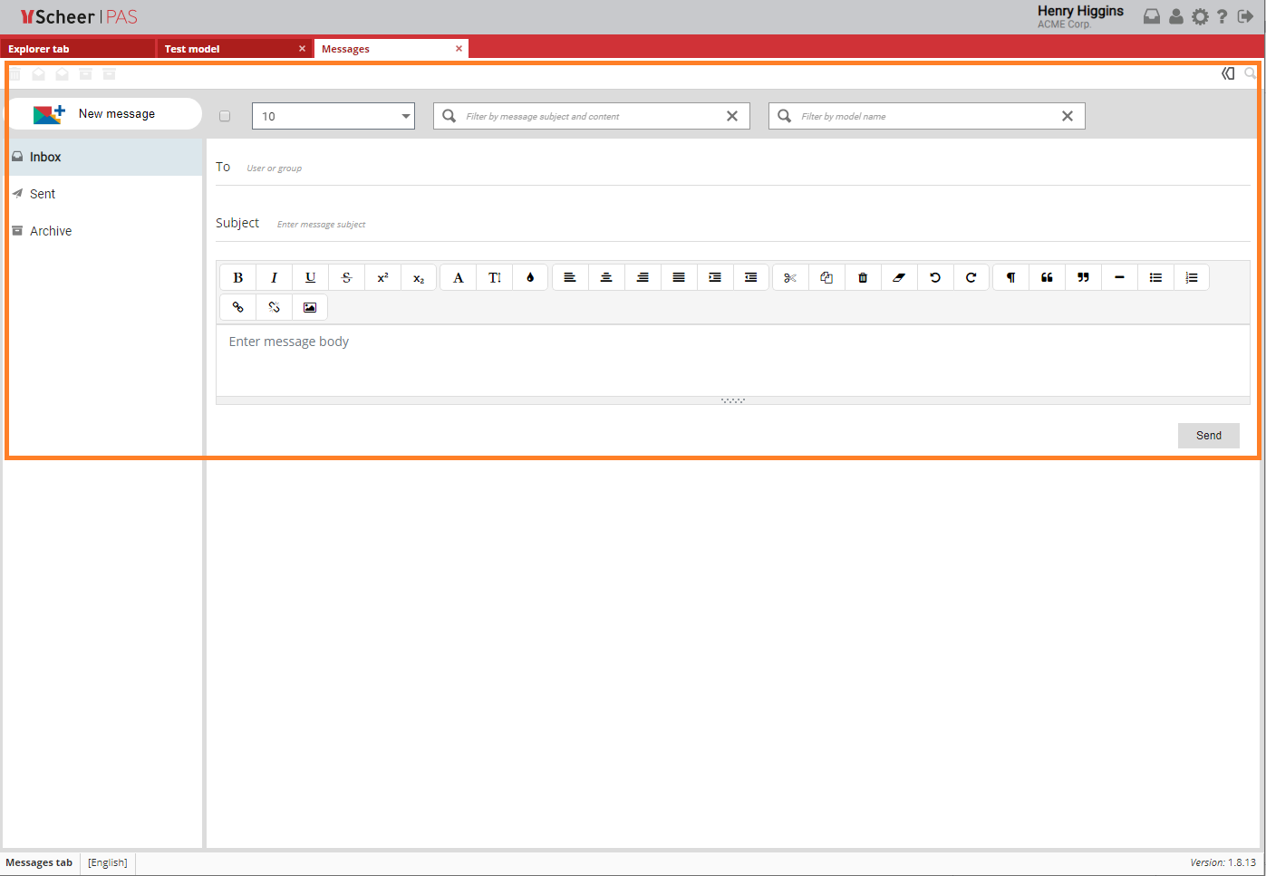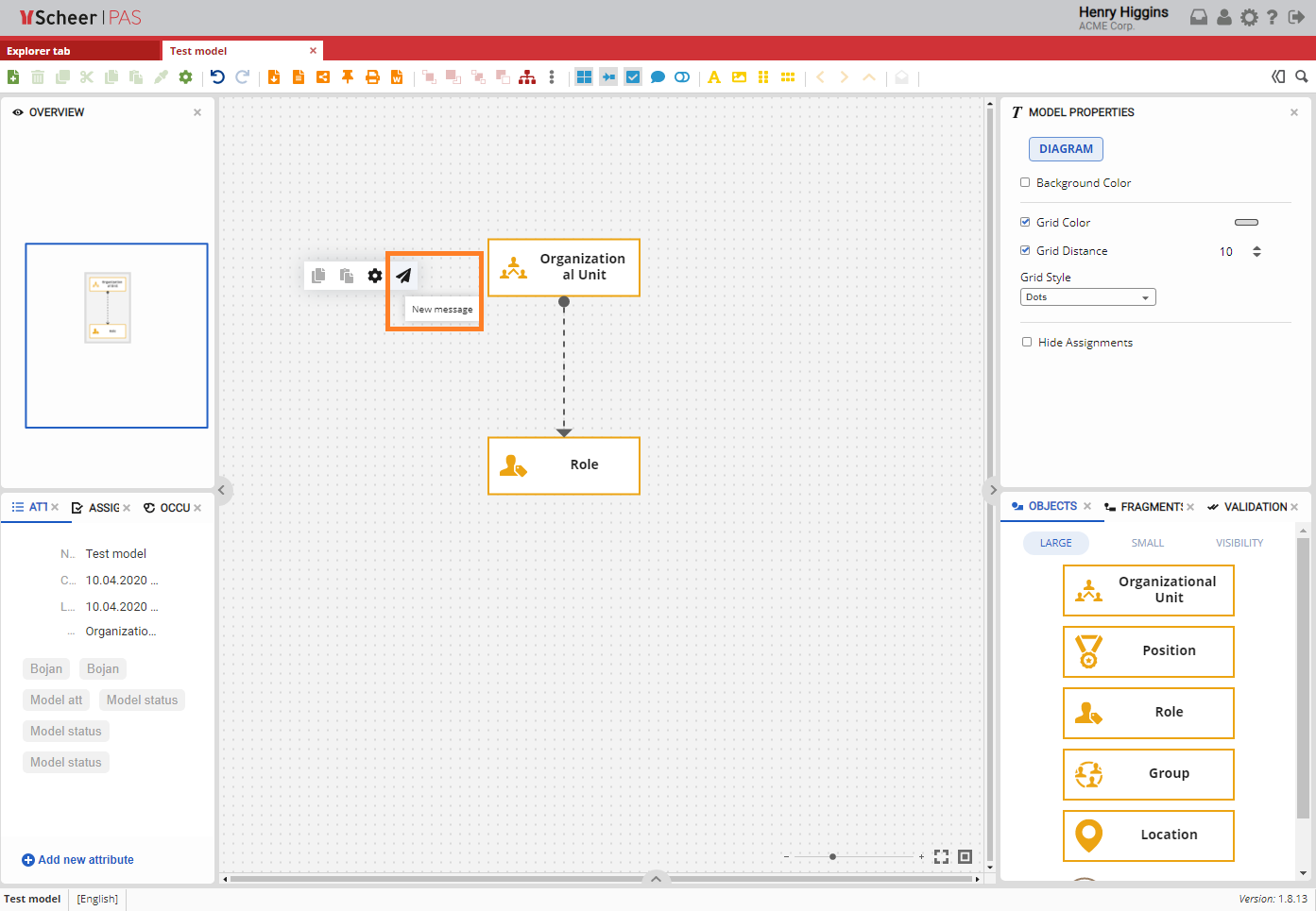 If you want to send a message from the model, right click on the canvas area of the model and choose New message.