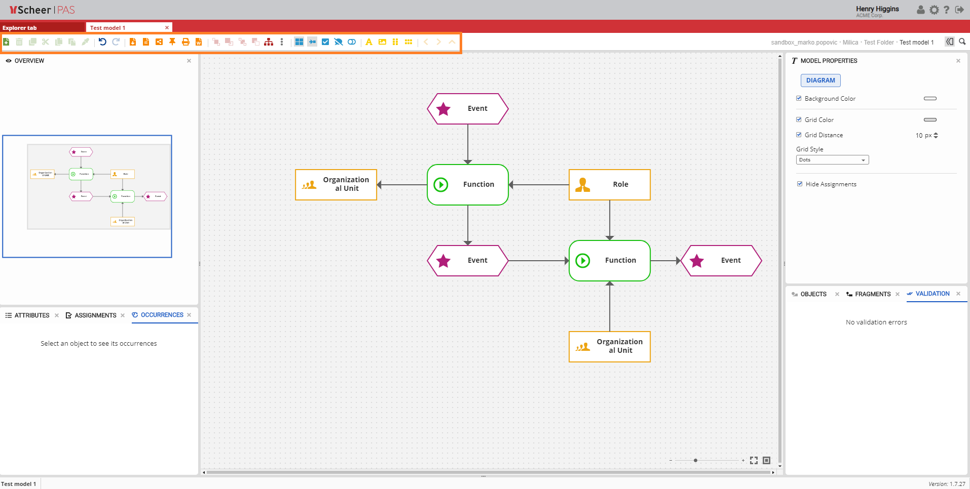 In addition to these basic options there are also orange icons that represent: Export, Report, Share, Publish to Cockpit, Print model and Print model to Word (.docx).