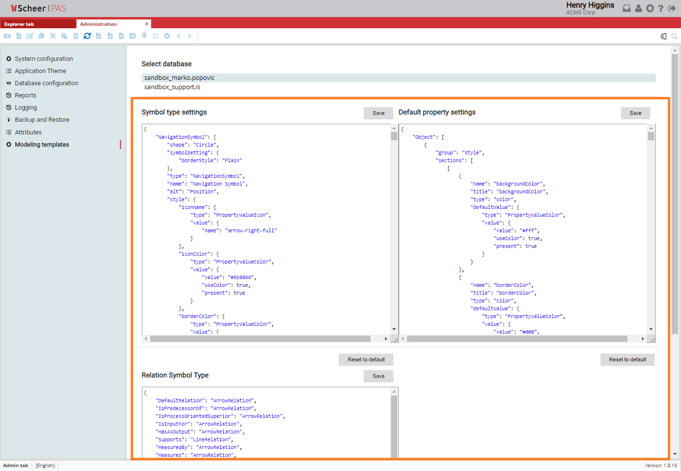 The Modeling Templates page is part of the Administration Tab, where you can work with templates for a specific database.