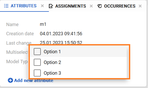 The Multiselect attribute is a field in which you can select one or more options that are predefined, or you can create new options to select.